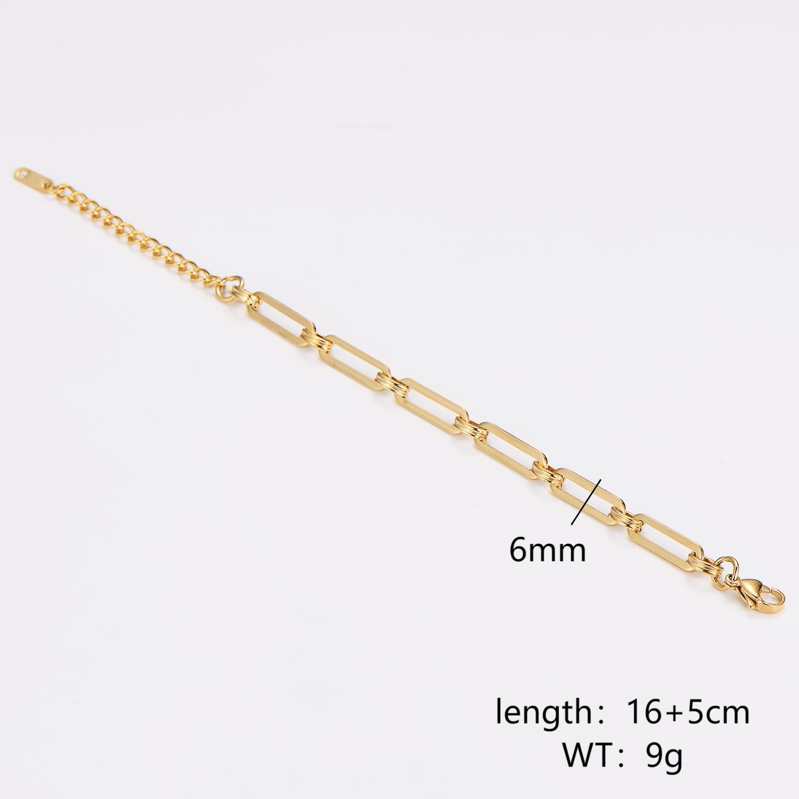Aml Jewelry Stainless Steel Stacking Simple Handmade Chain Flat Long Chain Bracelet Gold Personality