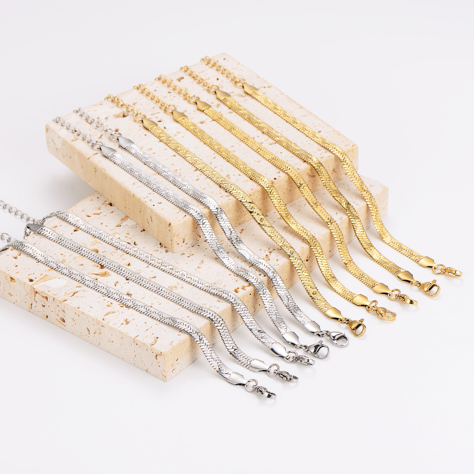 Aml Stainless Steel Batch Pattern Blade Sweater Chain Simple Ladies Clavicle Chain Fashion Flat Snake Stainless Steel Snake