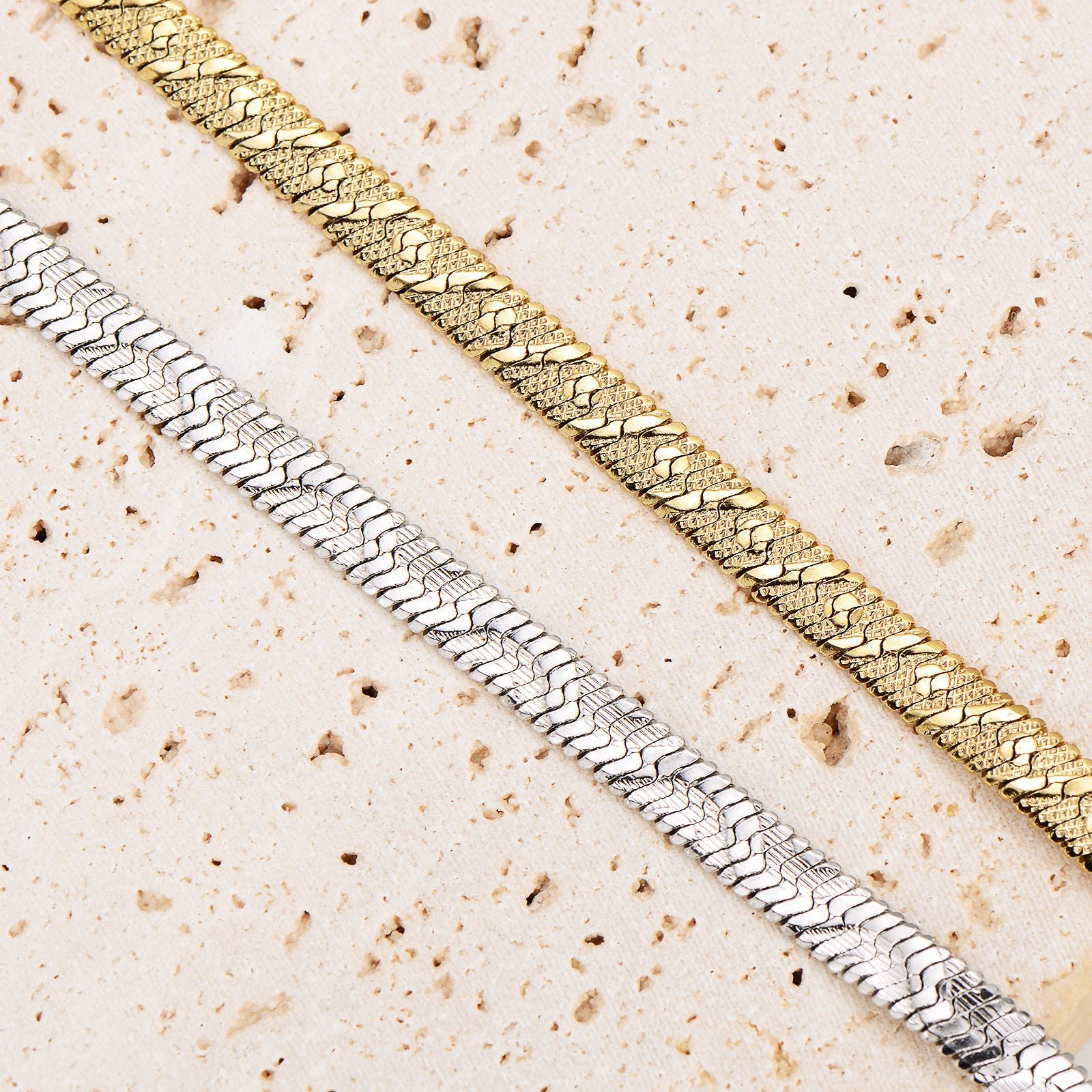 | Color | Steel Color Wavy Embossed Fish Bone Bracelet, Gold Wave Embossed Fishbone Bracelet, Steel Color Striped Polka Dot Fish Bone Bracelet, Gold Striped Polka Dot Fish Bone Bracelet, Steel Color Cross Fishbone Bracelet, Gold Cross Fishbone Bracelet, Steel Color Striped Fish Bone Bracelet, Gold Striped Fish Bone Bracelet, Steel Color Pattern Fish Bone Bracelet, Gold Pattern Fish Bone Bracelet |