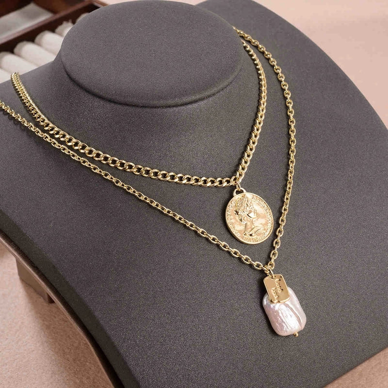 Baroque Pearls Freshwater Pearl Copper Inlay Pearl Pearl Double Layer Necklaces Pendant Necklace