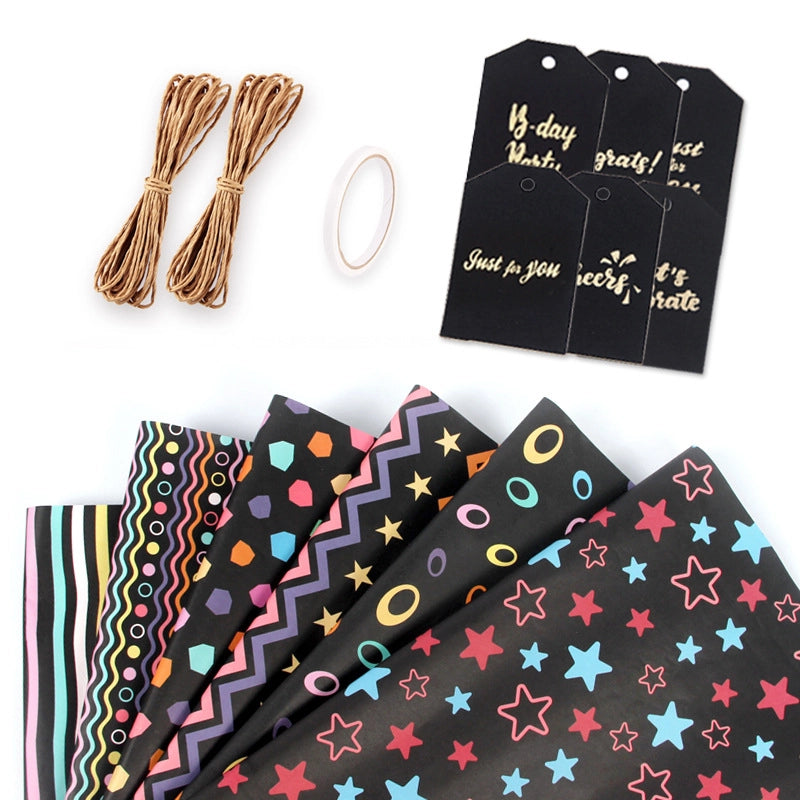 Birthday Retro Star Stripe Paper Party Gift Wrapping Supplies