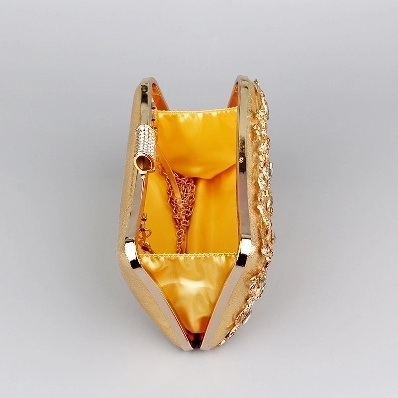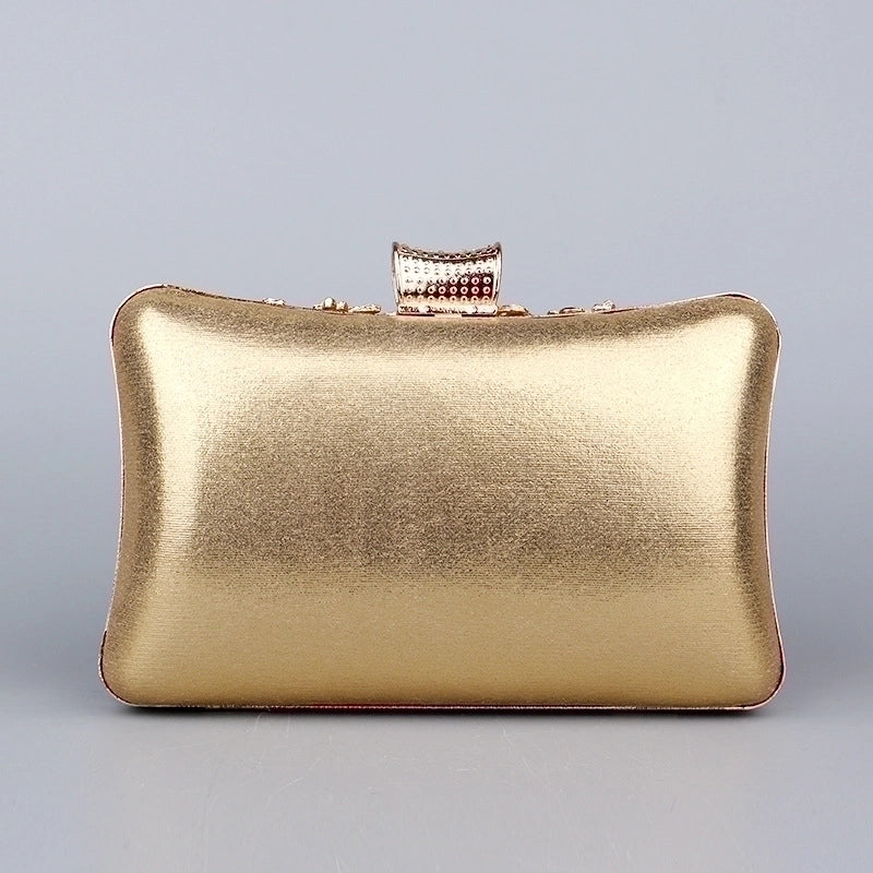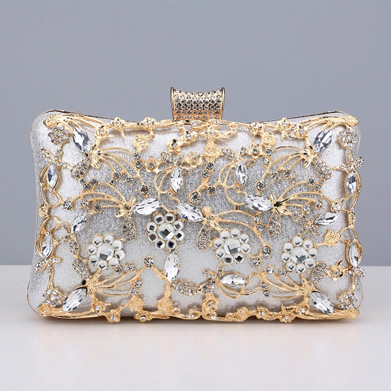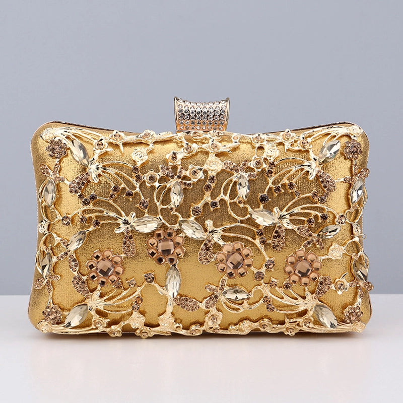 Black Gold Silver Pu Leather Flower Rhinestone Square Clutch Evening Bag