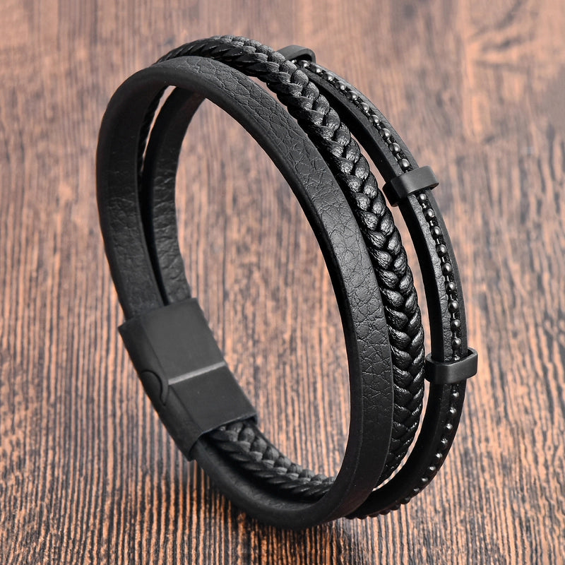 Be the first to review “Black Leather Rope Cowhide Men’s Double-Layer Stainless Steel Authentic Leather Weave Bracelet Handmade Multi-Layer Leather Bracelet 86” Cancel reply