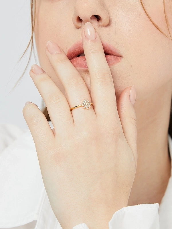 Brass 14K Gold Plated White Gold Plated Plating Flower Daisy Open Rings