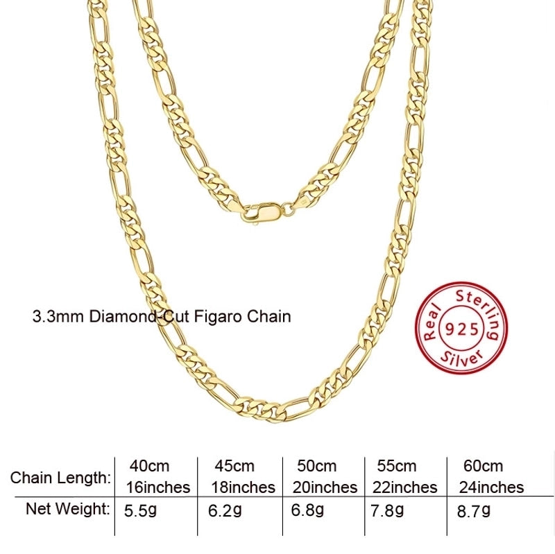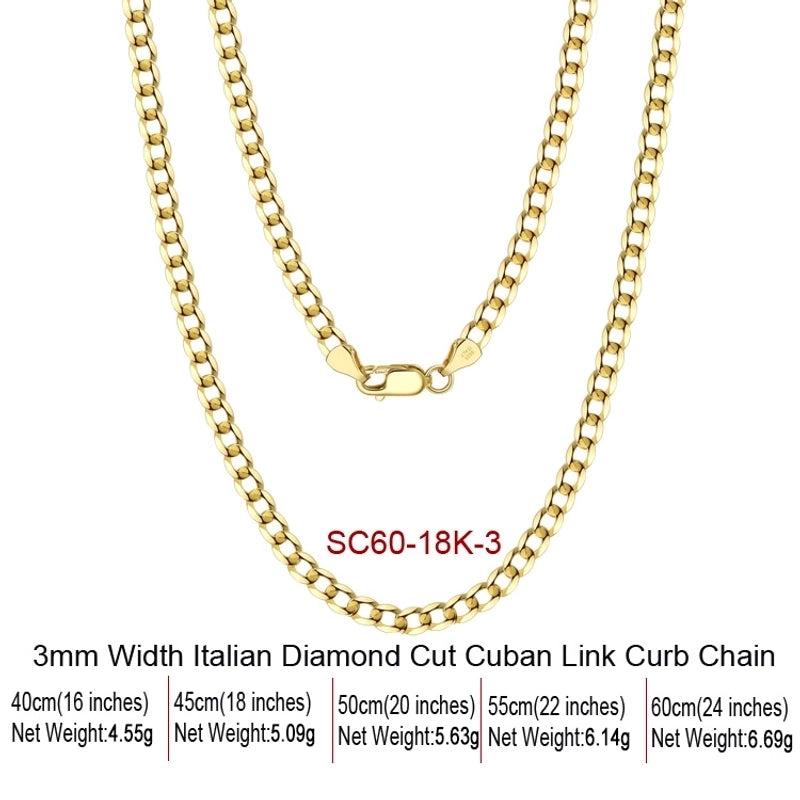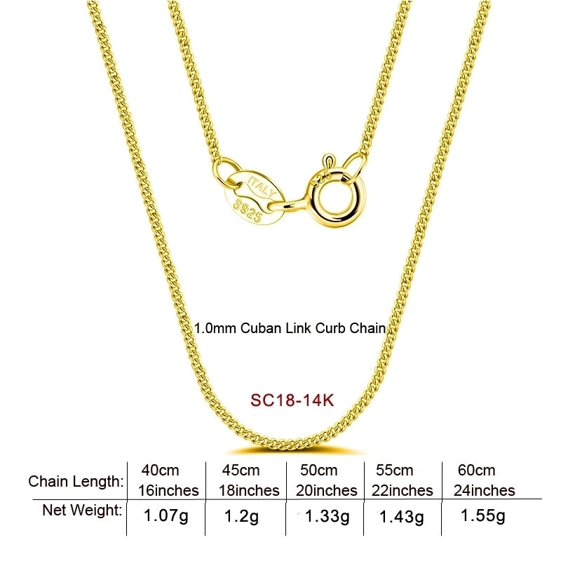 BSC-4 Silver Cuban Link Chain Necklace Plata 925 Al Por Mayor Italiana 925 Silver Chains 14K 18K Gold Chain For Men Women