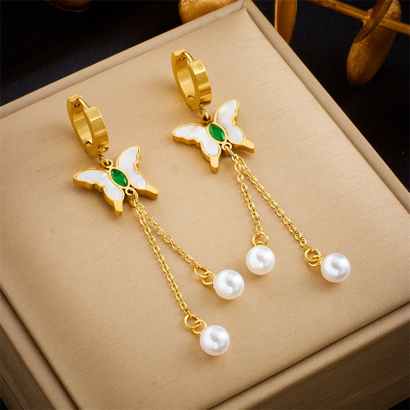 Butterfly Bowknot Titanium Steel Electroplating Earrings