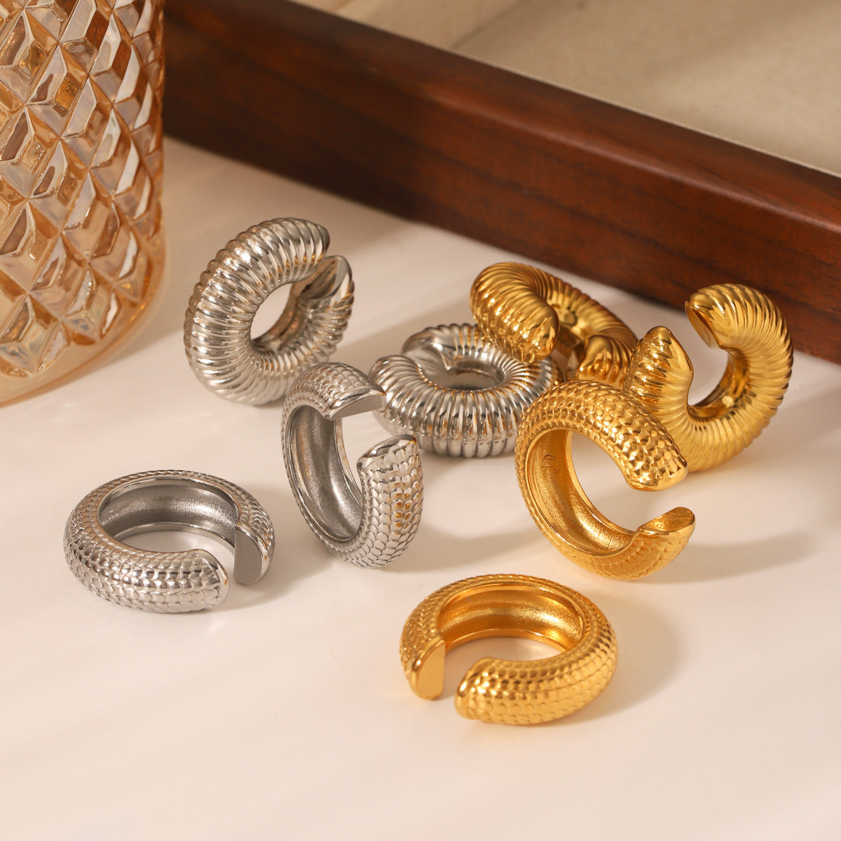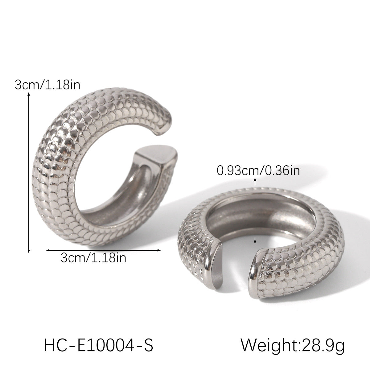 Be the first to review “C-Shaped Scale Texture Stainless Steel Ear Bone Clip Striped Hollow Ear Clip Personality Simple Titanium Steel Earrings” Cancel reply