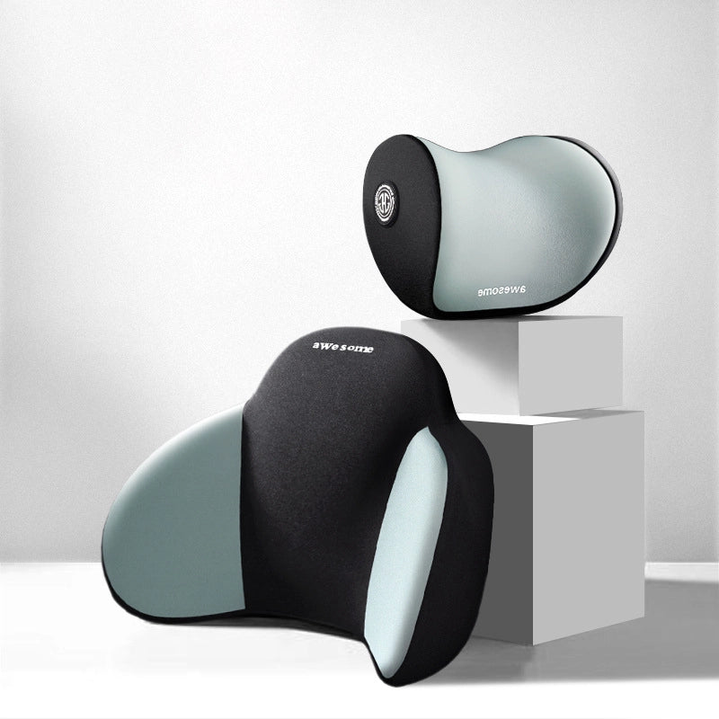 Car Lumbar Support Lumbar Pillow Memory Foam Lumbar Cushion Backrest Waist Support Cushion Car Seat Headrest Set