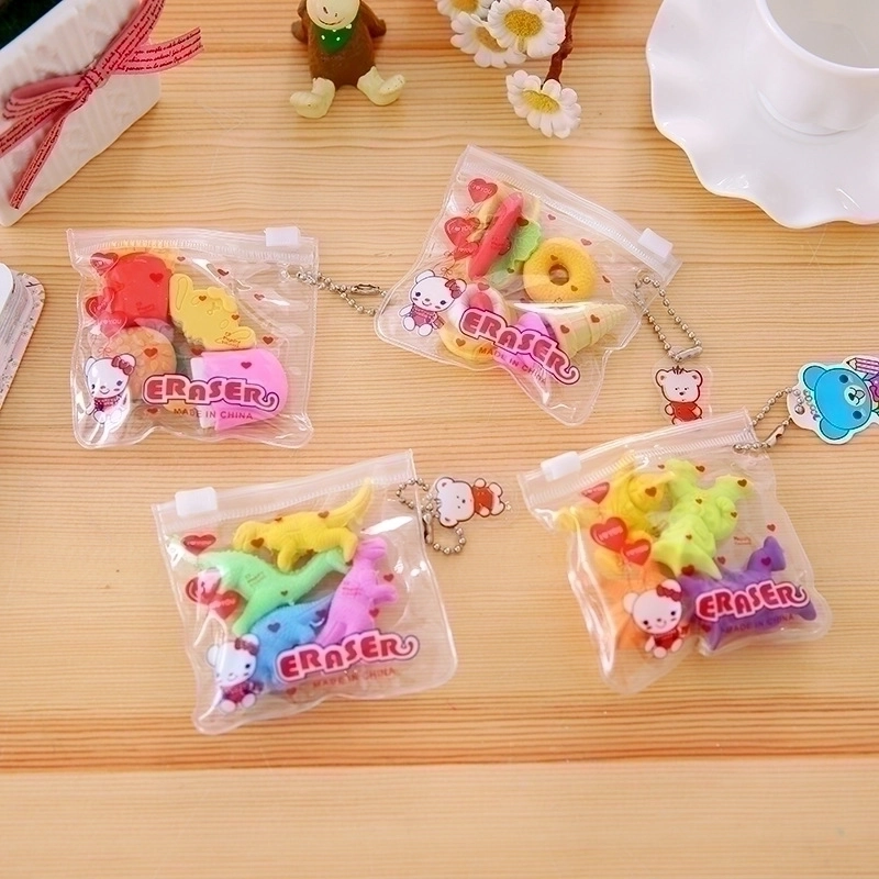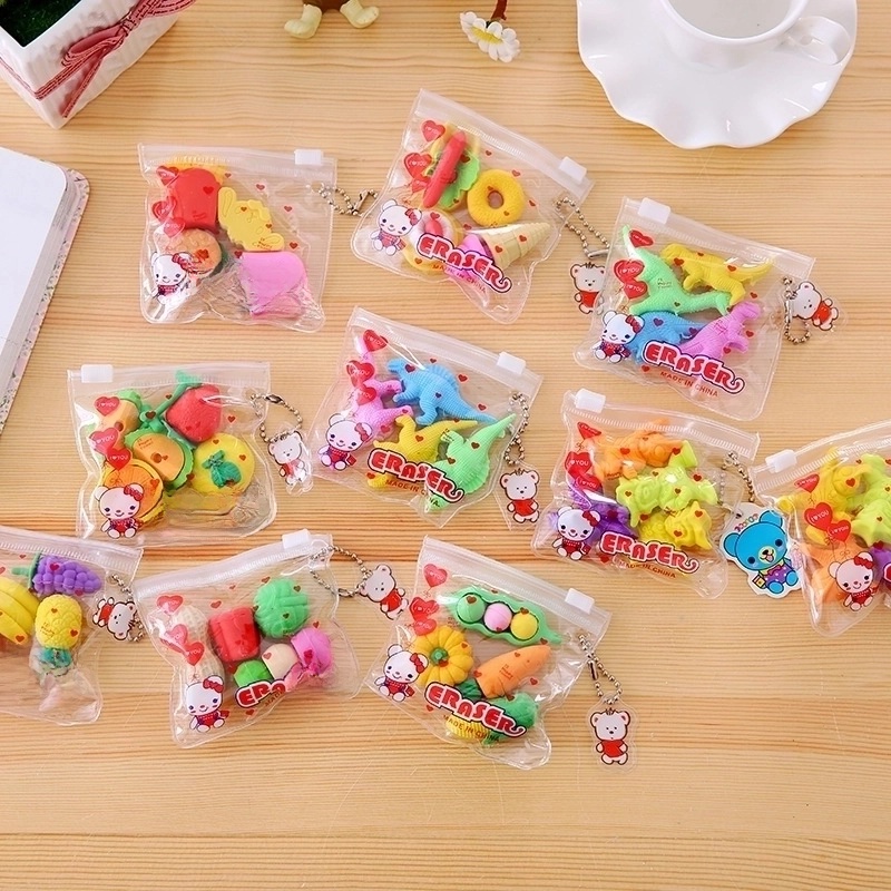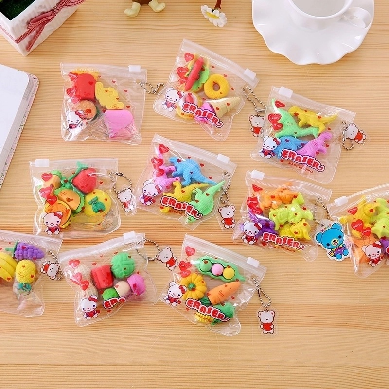 | Color | Dinosaur, Price For One Pack (4 Rubber), Fruit, Price For One Pack (4 Rubber), Vegetable, Price For One Pack (4 Rubber), Cake Dessert, Price For One Pack (4 Rubber) |