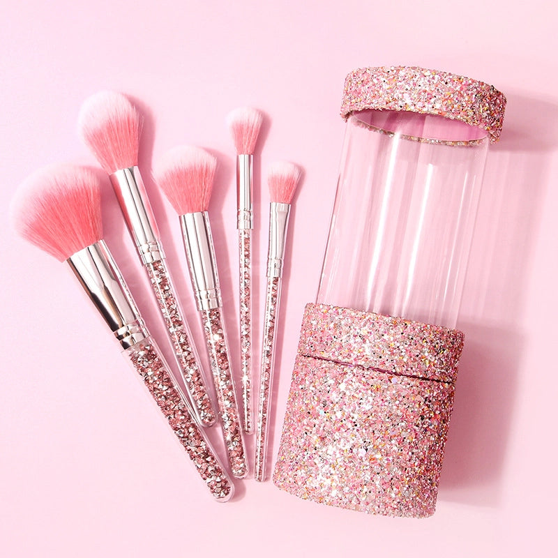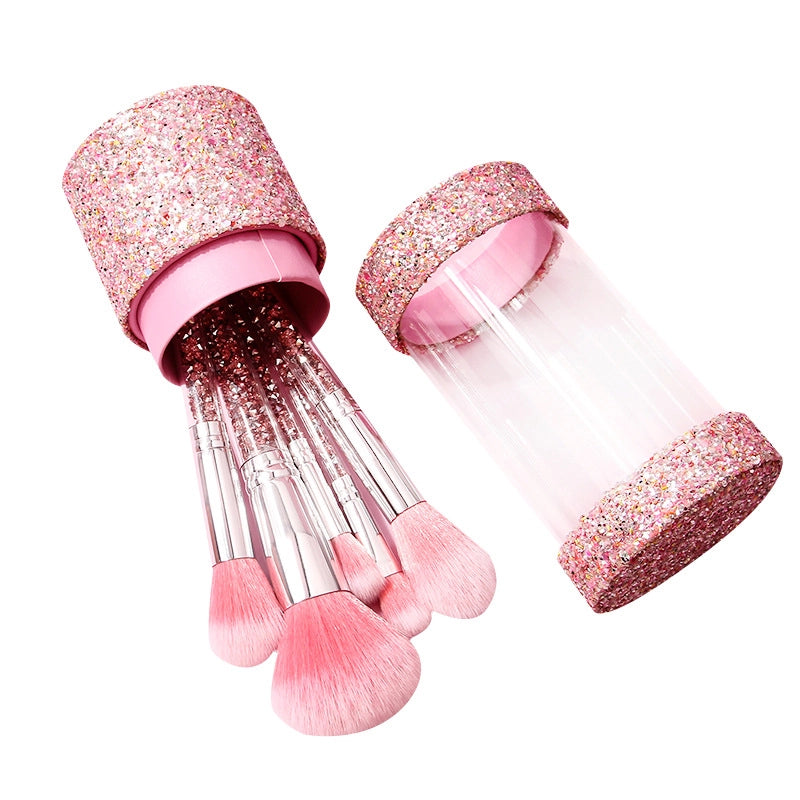 | Color | 5 PCs Diamond Handle Makeup Brush Set-Pink Fur, OPP Bag [5 Diamond Handles-Gray Hair Brush Suit]], [Sequins] Pink Transparent Bucket, [Sequins] Pink Transparent Barrel 5 Pink Diamonds Brush Suit |