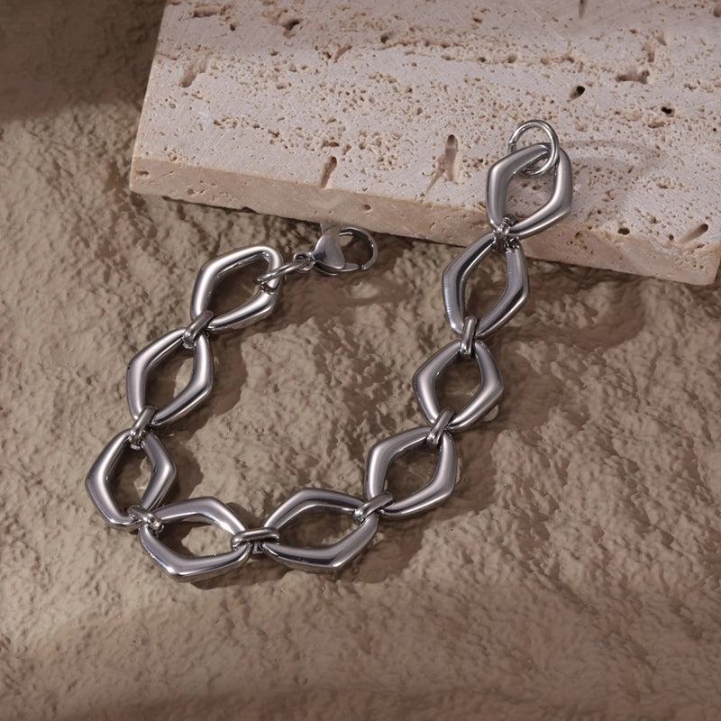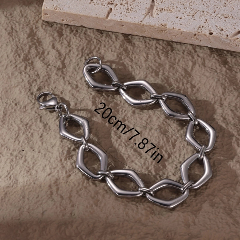 Casual Hip-Hop Rock Rhombus 304 Stainless Steel Hollow Out Men’s Bracelets Men Chain Bracelets