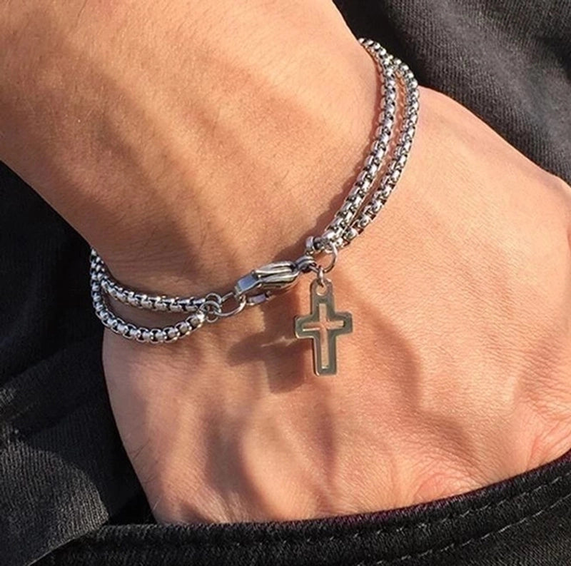 Casual Hip-hop Streetwear Cross Stainless Steel Men’s Bracelets