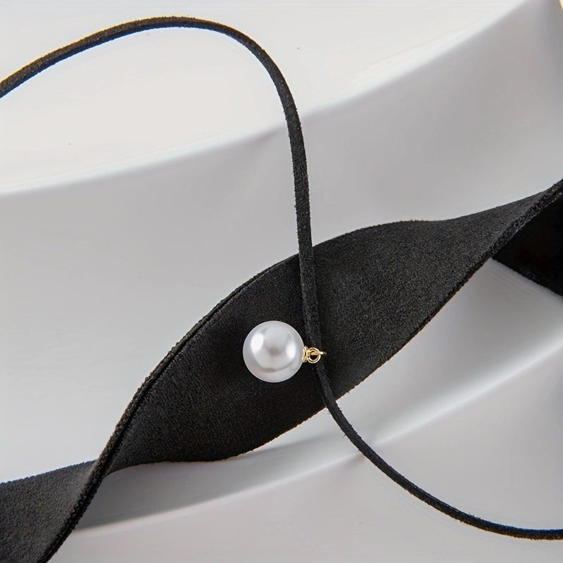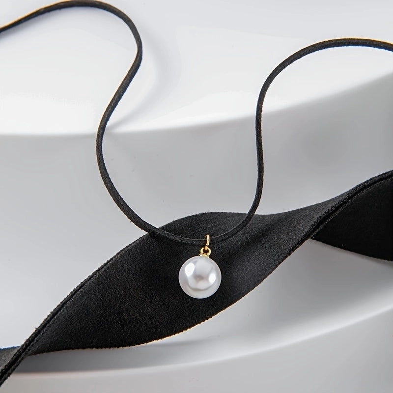 Casual Minimalist Round Artificial Pearls Imitation Pearl Korean Velvet Choker