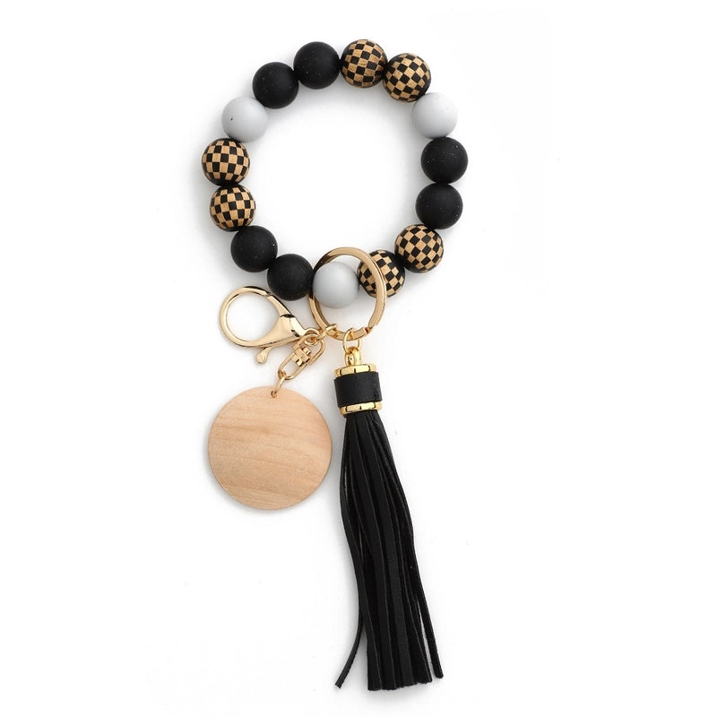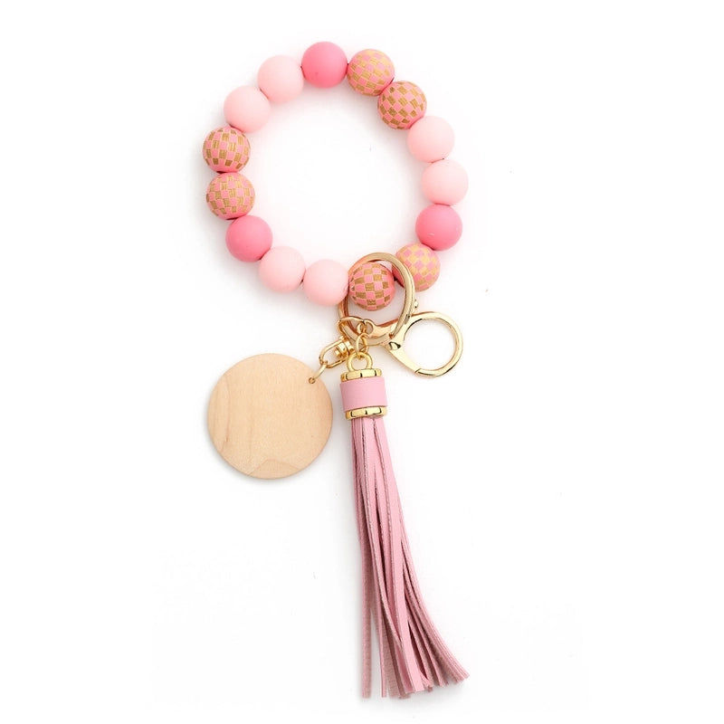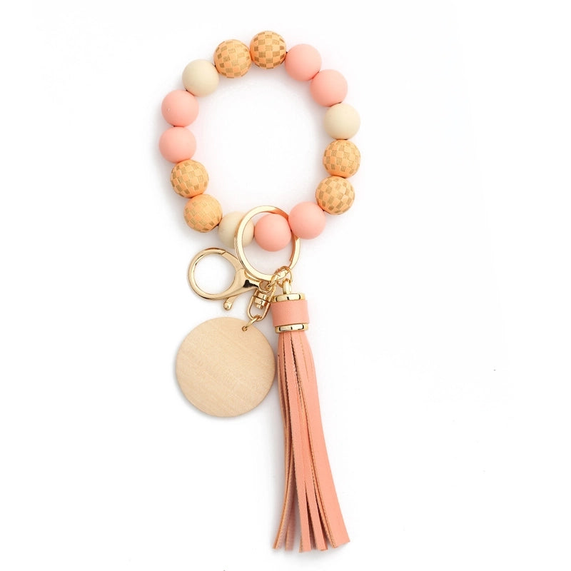 Casual Round Wood Silica Gel MAMA Bag Pendant Keychain