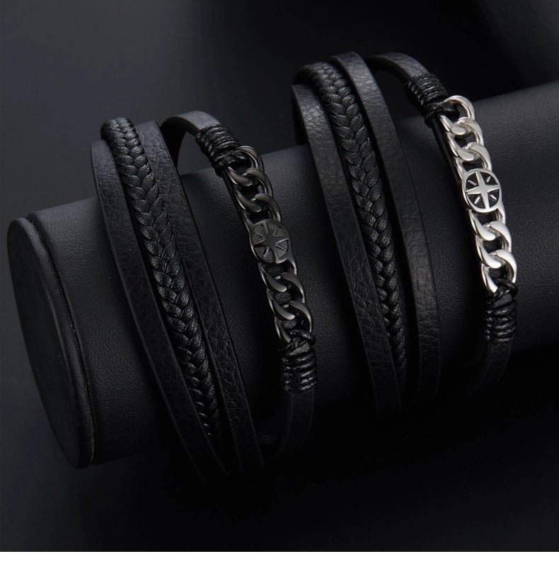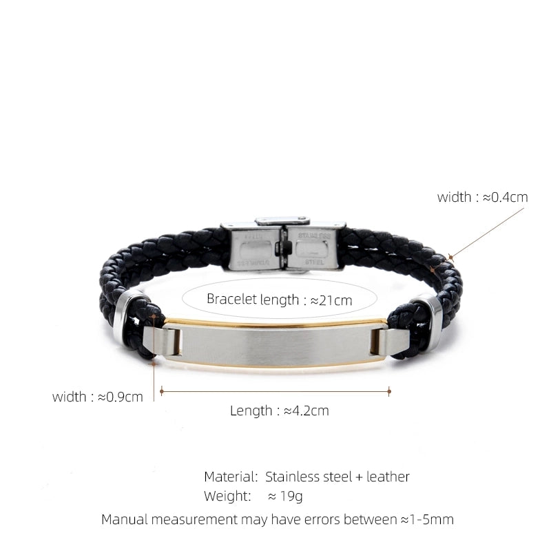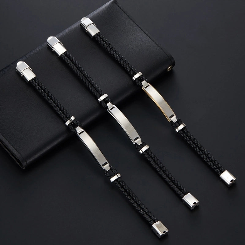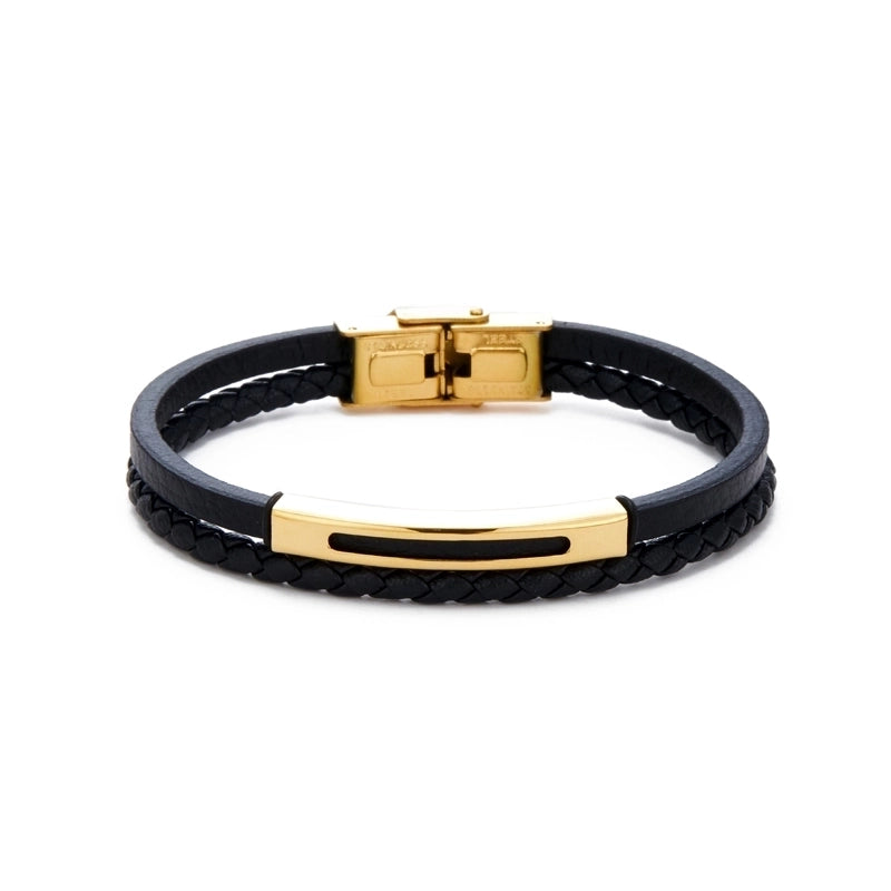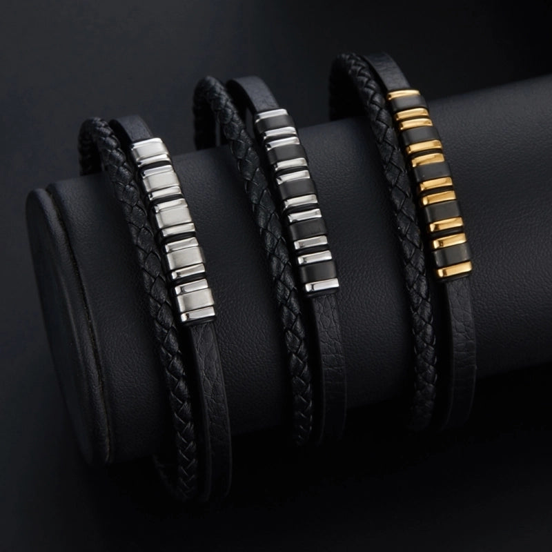 Casual Streetwear Geometric 304 Stainless Steel Pu Leather Braid 18K Gold Plated Men’s Bracelets