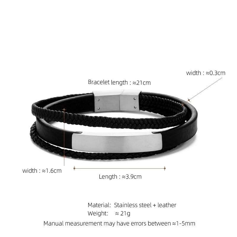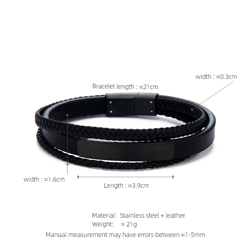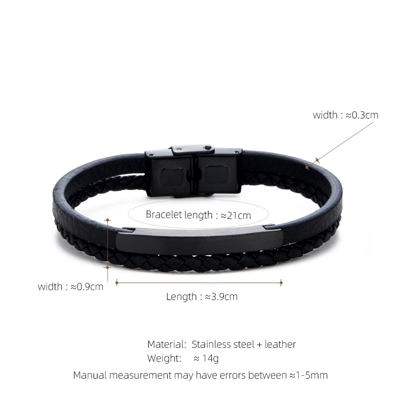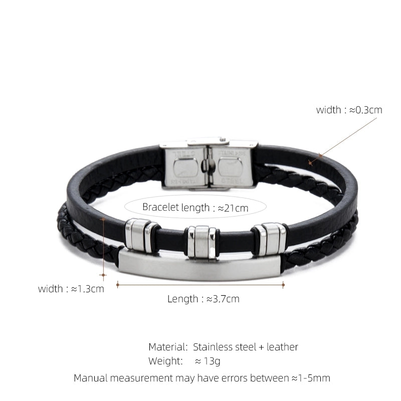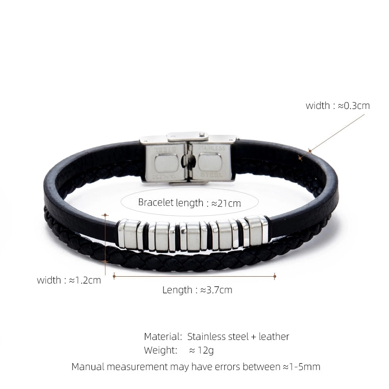 Casual Streetwear Geometric 304 Stainless Steel Pu Leather Braid 18K Gold Plated Men’s Bracelets
