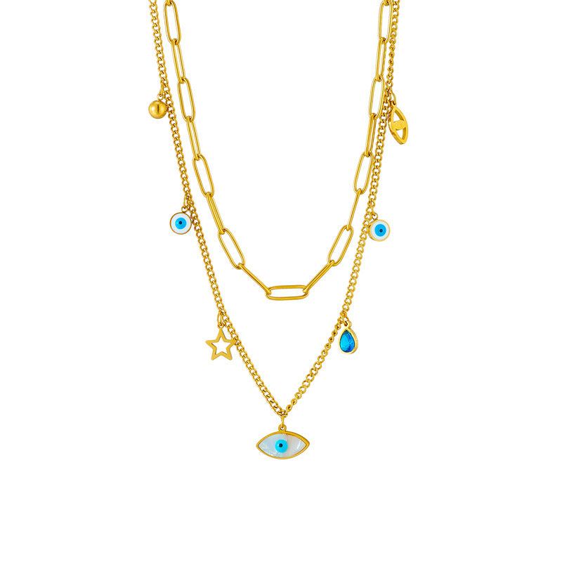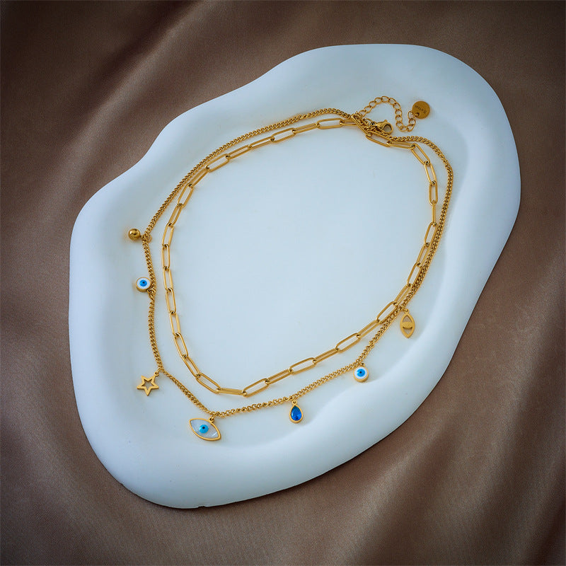 Chain Pentagram Geometric Titanium Steel Electroplating Necklaces
