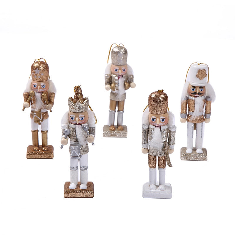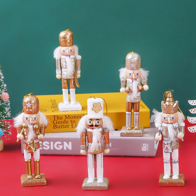 Christmas Decorations 12cm Bright Powder Wooden Nutcracker King Soldier Tin Soldier Desktop Ornaments Children’s Gift