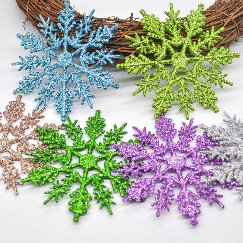 Christmas Decorations Powder Plane Snowflake Hanging Christmas Tree Pendant Window Decoration Pendant Snowflake 10cm