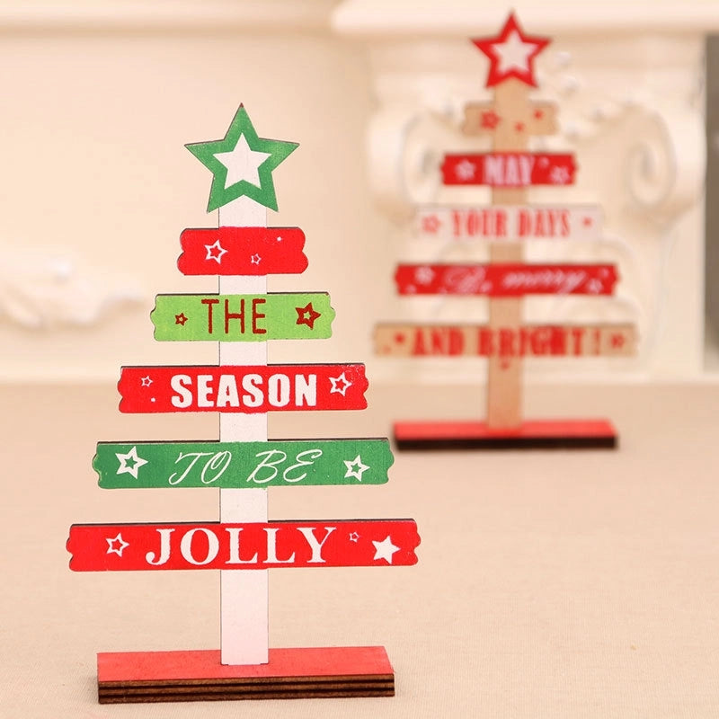 Christmas Decorations Wooden Diy Mini English Alphabet Christmas Tree Desktop Office Decorations