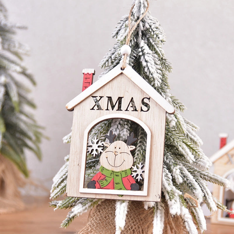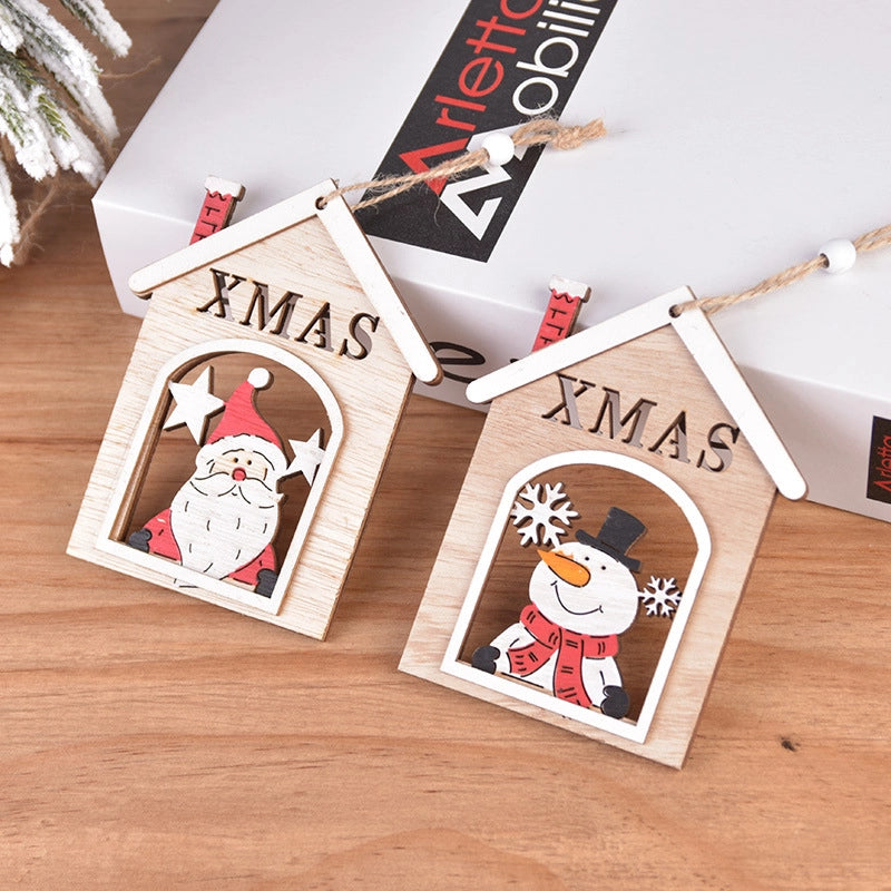 Christmas Minimalist Classic Style Santa Claus Wood Holiday Daily Hanging Ornaments Decorative Props