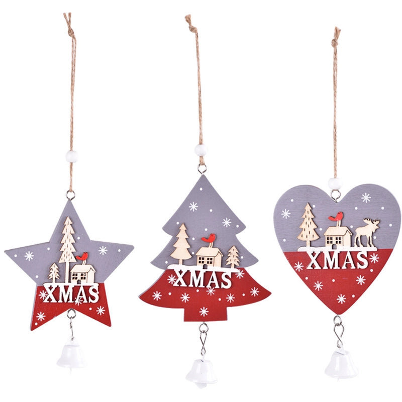 Christmas Minimalist Letter Heart Shape Wood Holiday Festival Hanging Ornaments Decorative Props