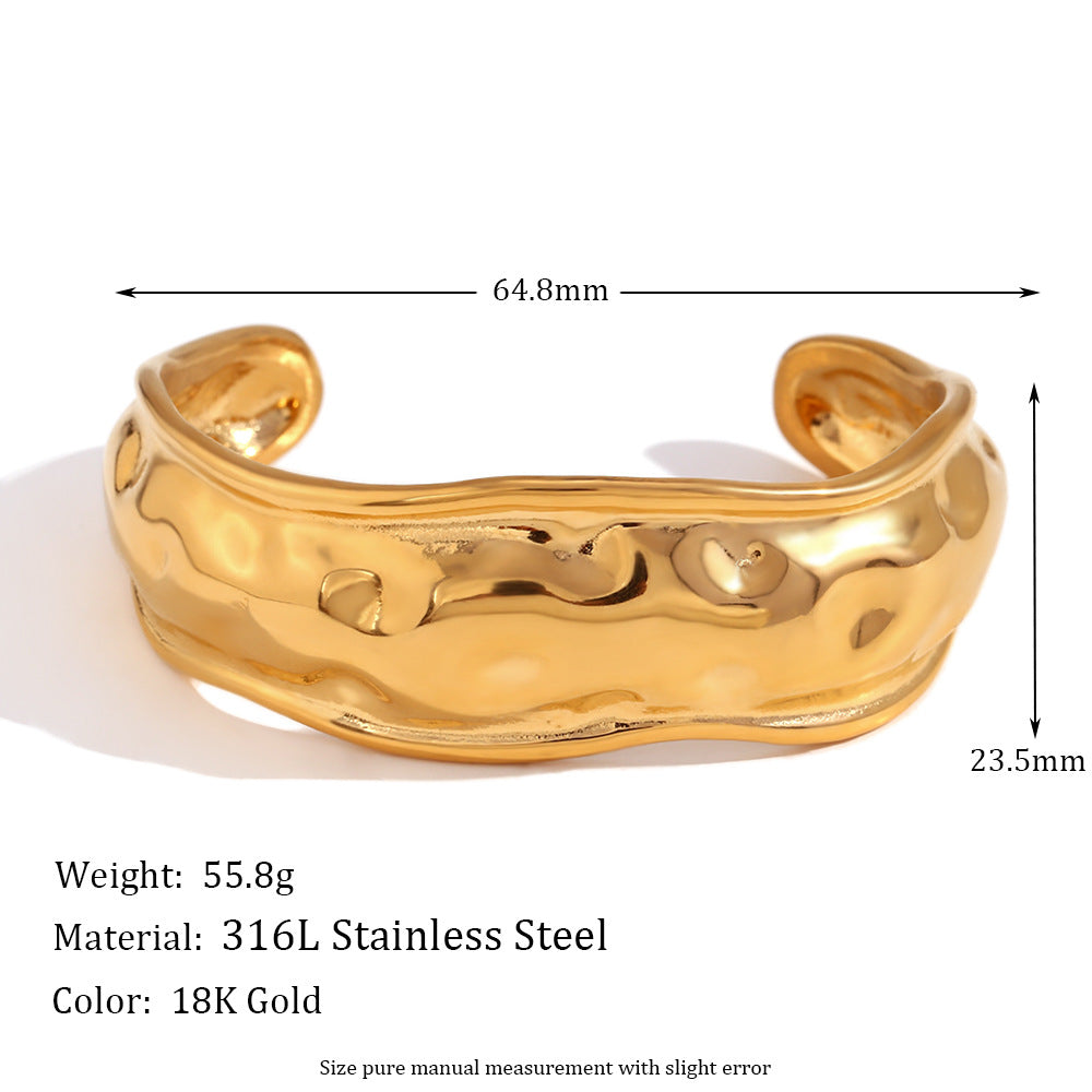 | Color | Open Big Beat Pattern Wave Bracelet – Gold, Open Big Beat Pattern Wave Bracelet – Steel |