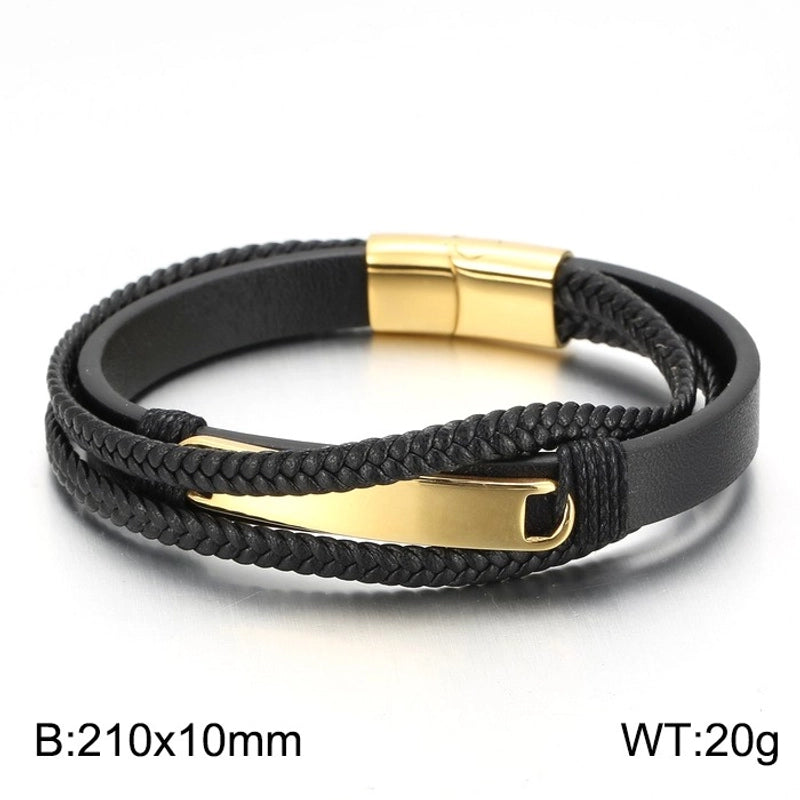 Be the first to review “Classic Style Commute Color Block Pu Leather Titanium Steel Braid 18K Gold Plated Men’s Bangle” Cancel reply