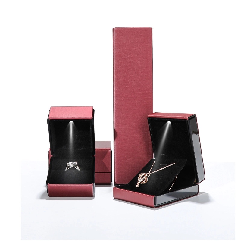 Creative LED Lamp Jewelry Box Proposal Ring Pendant Box Brushed Leather Jewelry Box Jewelry Box Spot
