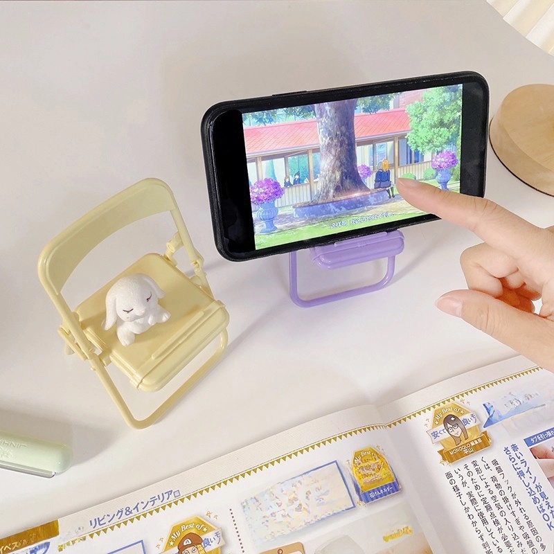 Creative Small Chair Mobile Phone Bracket Cute Bench Desktop Decoration Mini Lazy People Chasing Drama Folding Chair Mobile Phone Bracket