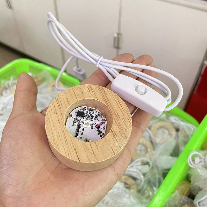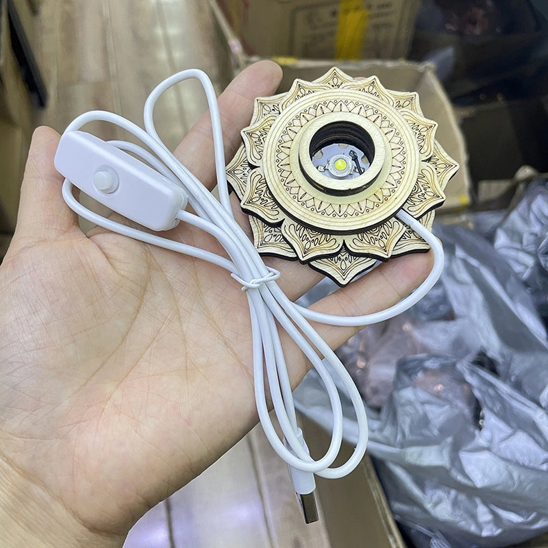 Crystal Ball Wooden Base Stump Root Lotus Round LED Light Decoration USB Night Light Desktop Decoration