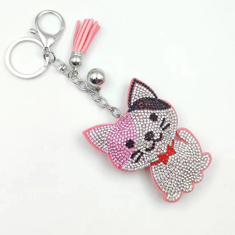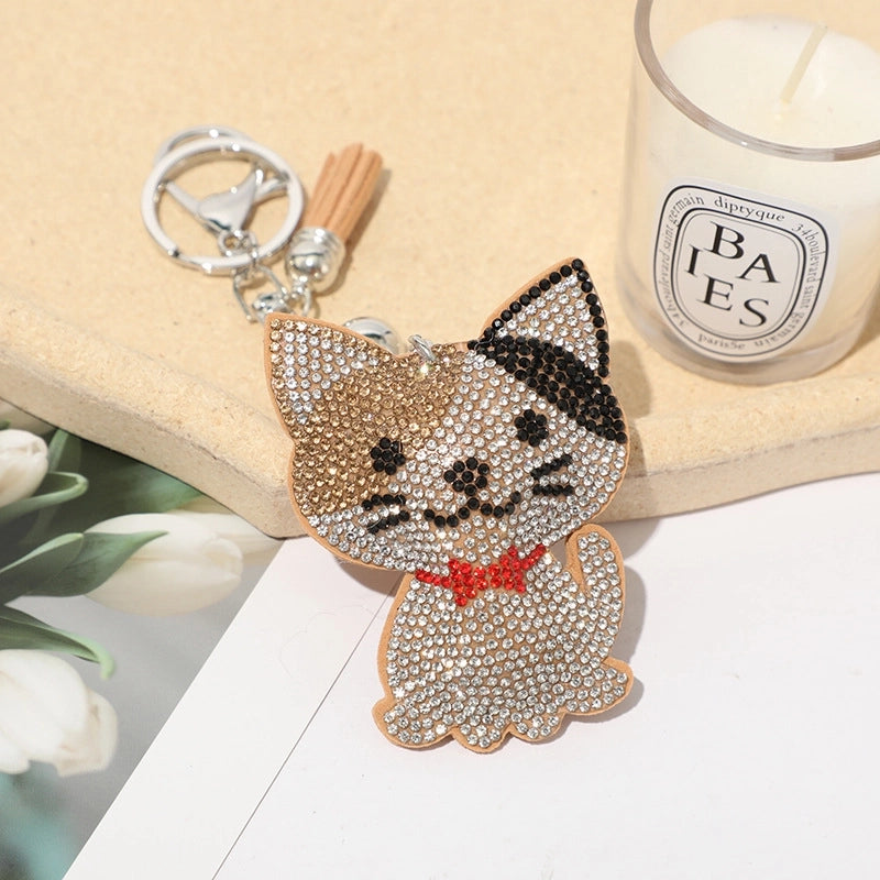 Cute Cat Alloy Flannel Rhinestones Women’s Keychain