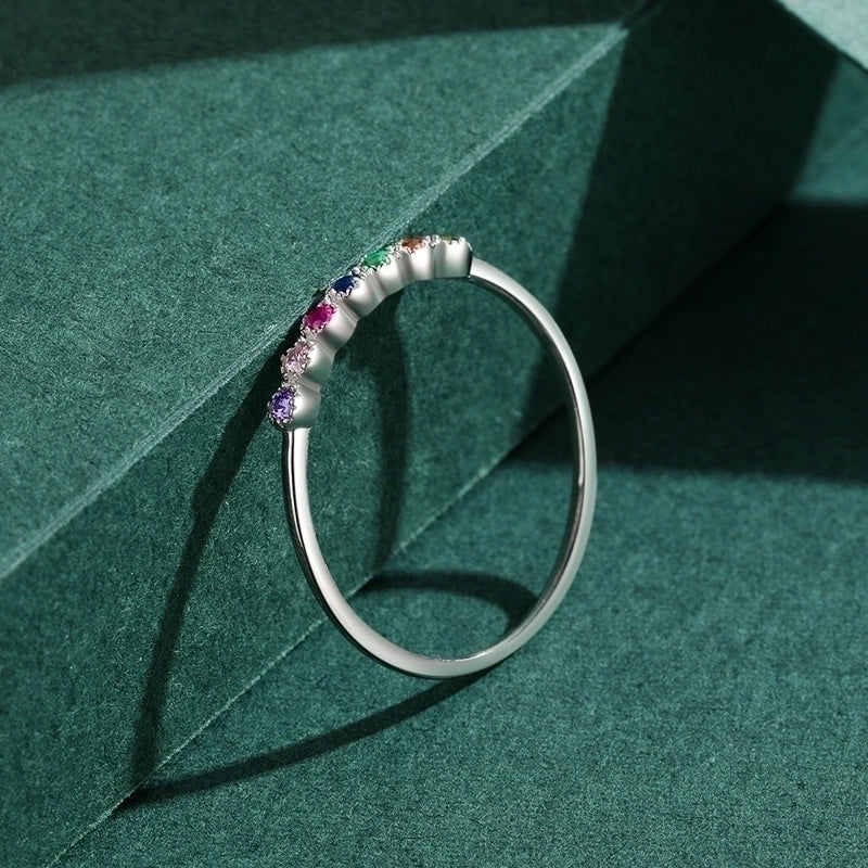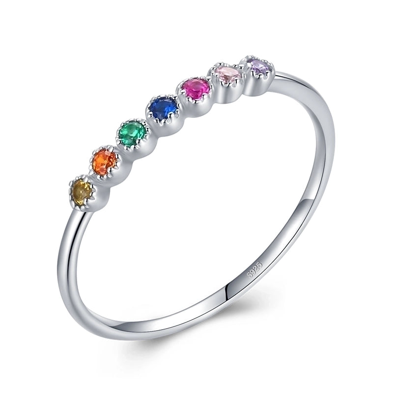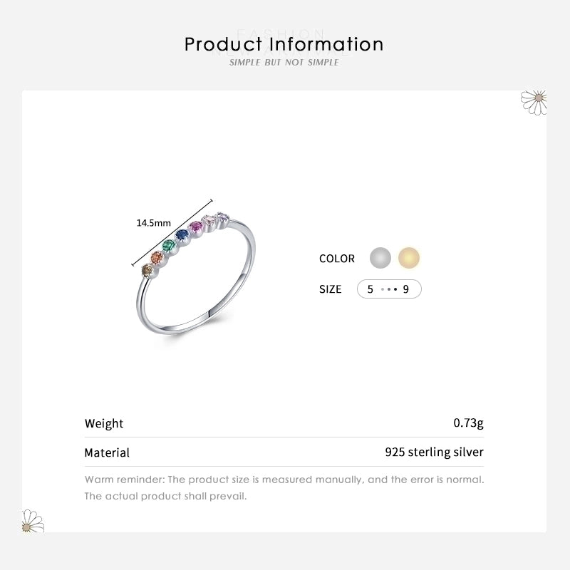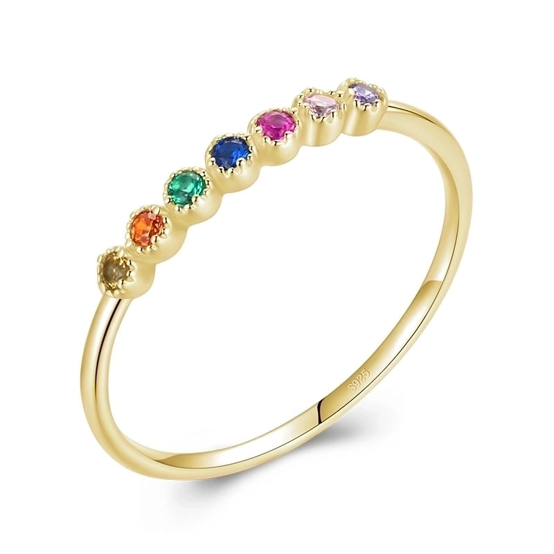 Cute Rainbow Sterling Silver Plating Inlay Zircon 14k Gold Plated Rhodium Plated Rings