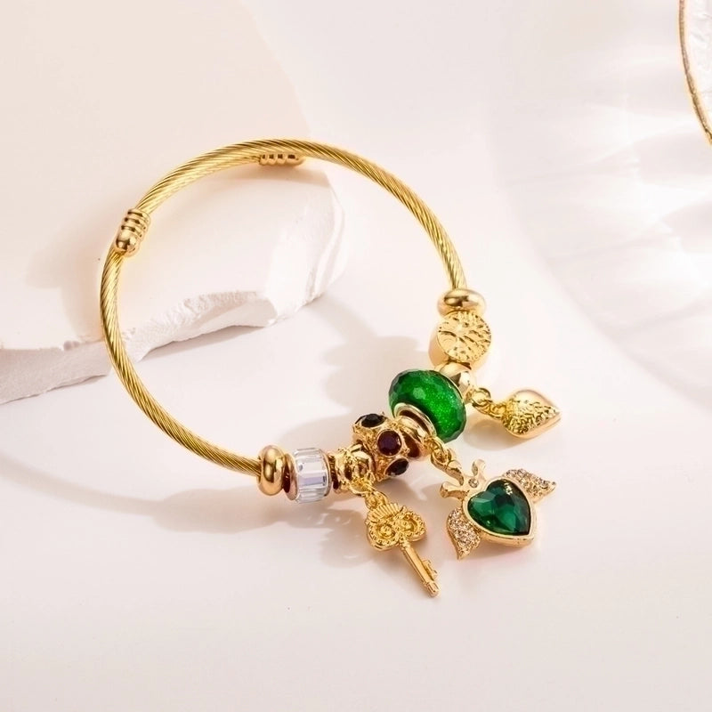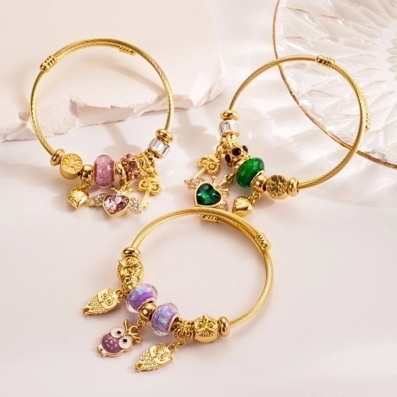 304 Stainless Steel Alloy Gold Plated Cute Romantic Plating Inlay Heart Shape Owl Rhinestones Bangle