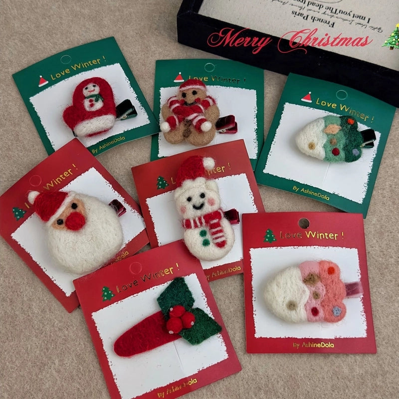 | Color | Santa Barrettes, Christmas Hat Barrettes, Gingerbread Man Barrettes, Star hairpin, Bow Bell Hair Ring, Stereo Hat Barrettes, Bow Antlers Barrettes, Bow Barrettes, Green Barrettes Pairs, Silver Ball a Pair of Hairclips, Green Ball a Pair of Hairclips, Bow a Pair of Hairclips, Green Antlers, Red Antlers, Love a Pair of Hairclips, Hat Barrettes, Green Bow a Pair of Hairclips, Red Socks Hairpin, Felt Gingerbread Man Barrettes, Bow Hairband, Bow Hair Ball a Pair of Hairclips, Hat Headband, Bear Headband |