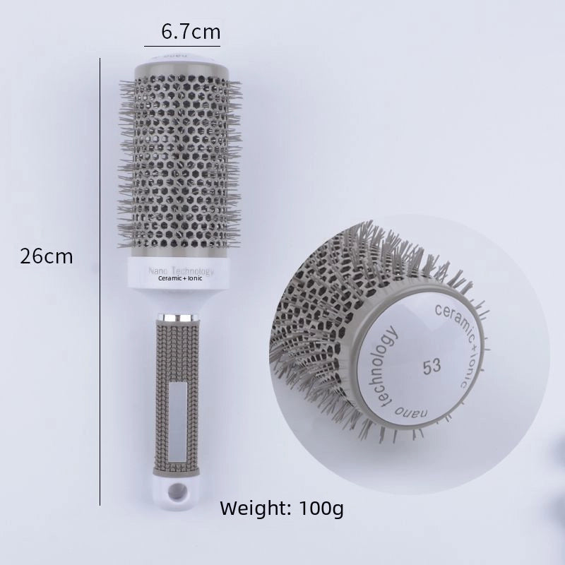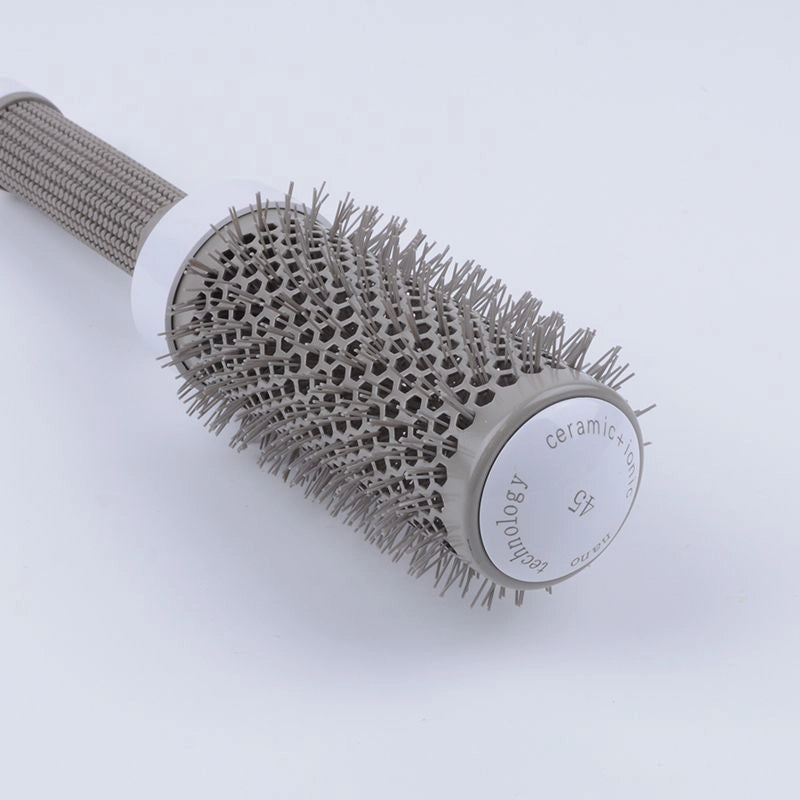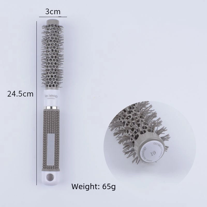 Cylinder Curly Hair Professional Styling Gray Handle Thermal Conductivity Air Aluminum Tube Ceramic Roll Comb Hair Comb
