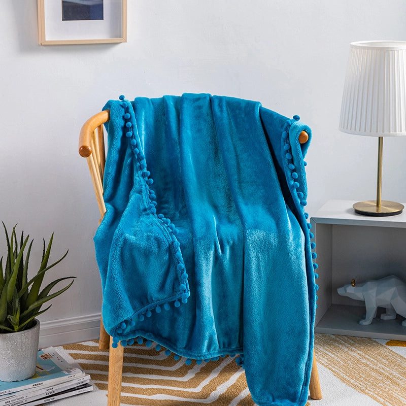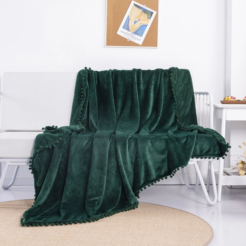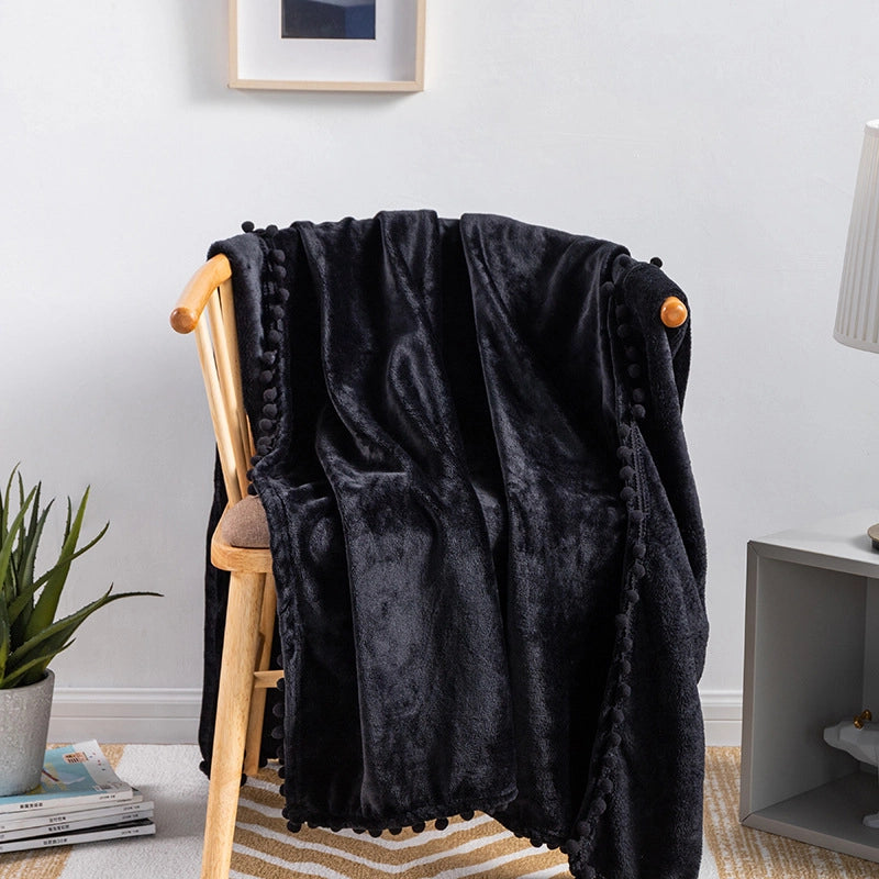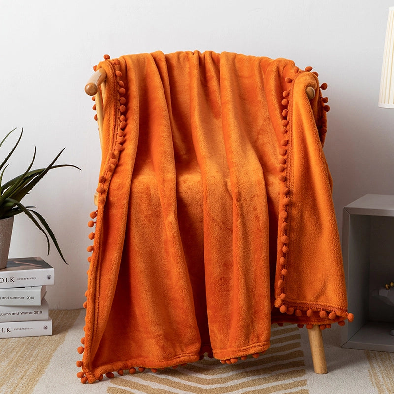 Direct Supply Flannel Tassel Ball Solid Color Blanket Sofa Dormitory Blanket Gift Air Conditioning Blanket