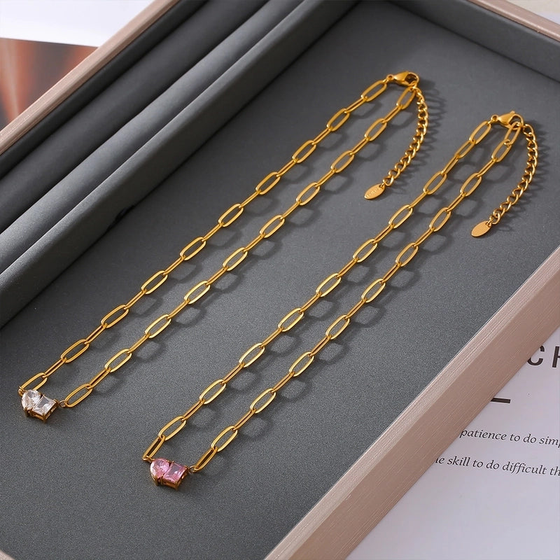 | Color | P2004-White Zircon Necklace, P2004-Pink Zircon Necklace |