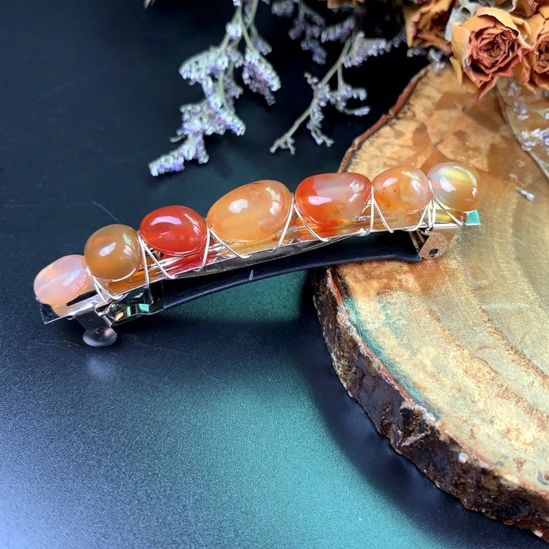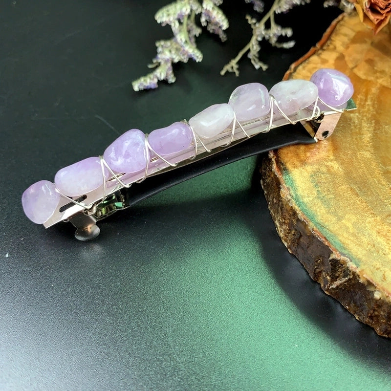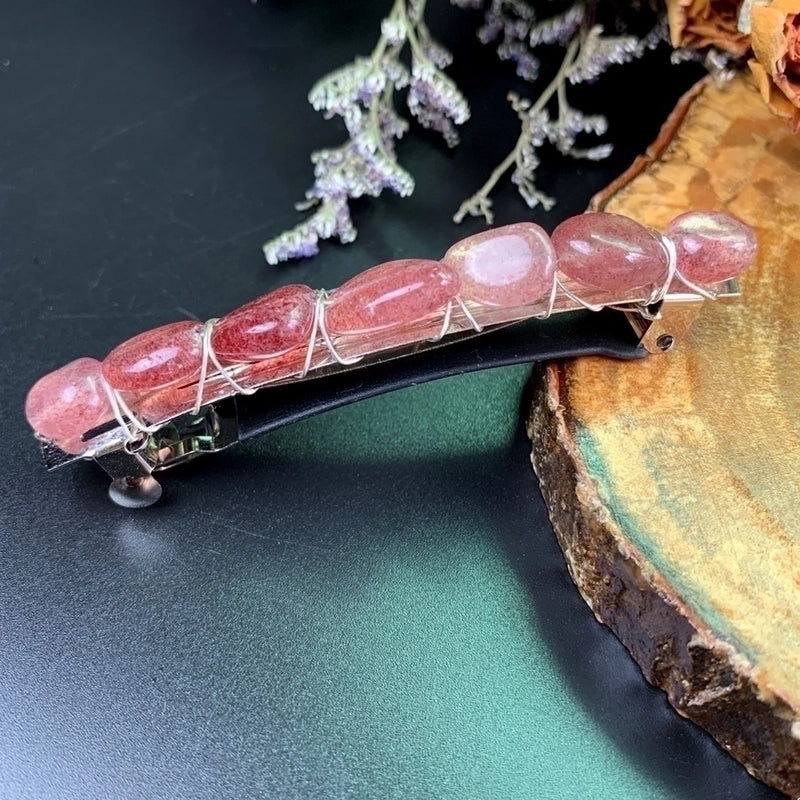 | Color | Red Agate Barrettes, Strawberry Quartz Barrettes, Pink Crystal Barrettes, Light Purple Barrettes, White Crystal Barrettes, Amethyst, Fluorite Barrettes, Pearl Barrettes |