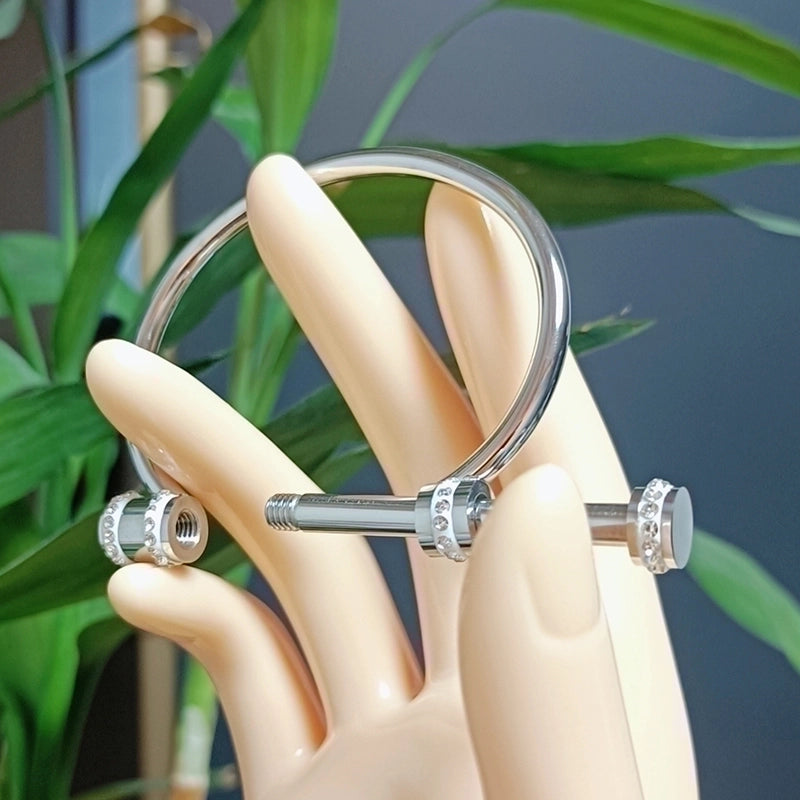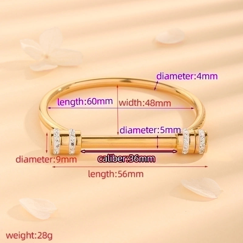 Elegant Luxurious Round Titanium Steel 18K Gold Plated Rhinestones Bangle In Bulk