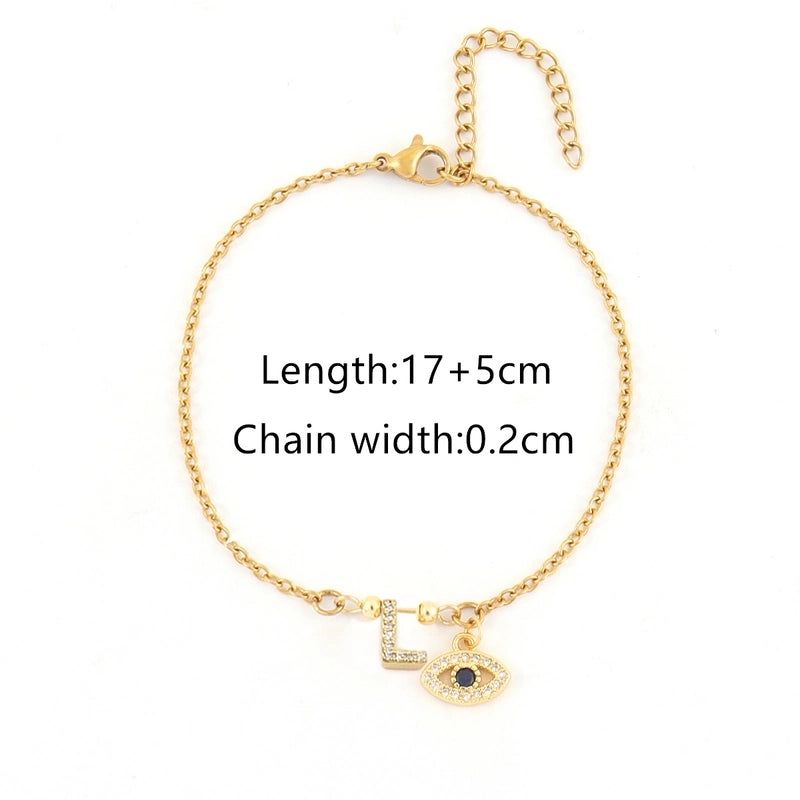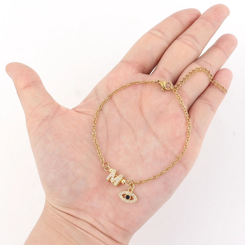 Elegant Minimalist Classic Style Letter Eye 201 Stainless Steel 304 Stainless Steel Copper Zircon Bracelets In Bulk