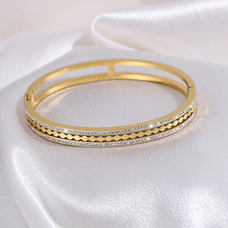 Elegant Minimalist Classic Style Solid Color 304 Stainless Steel Zircon Bangle In Bulk