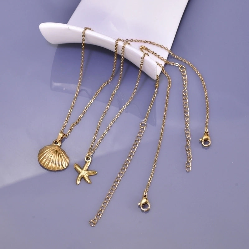 Elegant Minimalist Streetwear Starfish Solid Color Shell 304 Stainless Steel 18K Gold Plated Pendant Necklace
