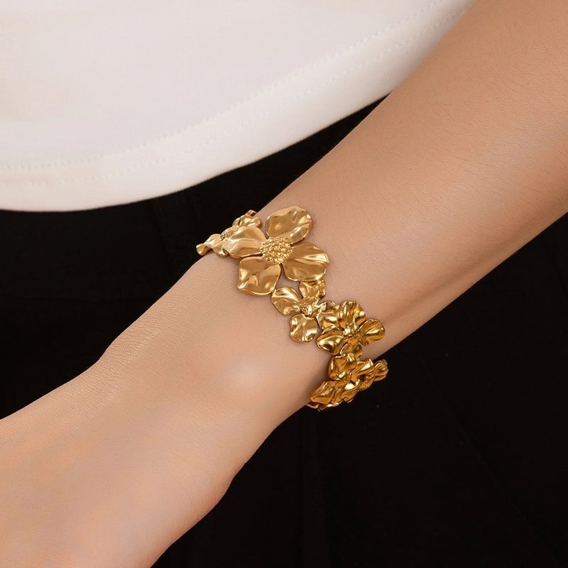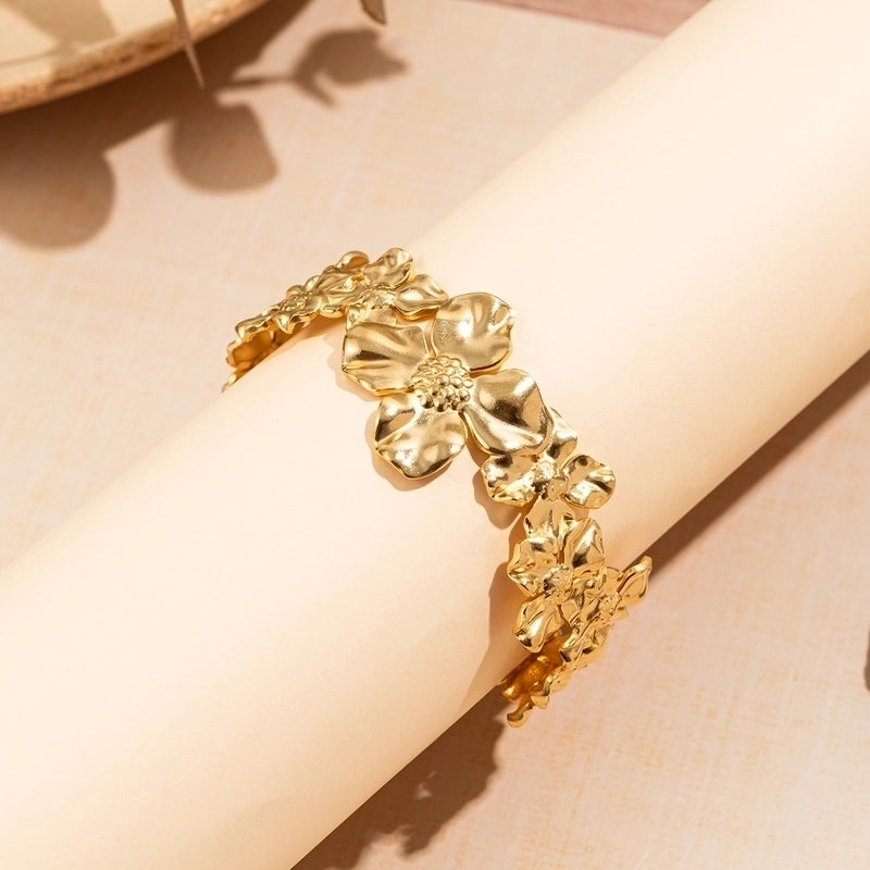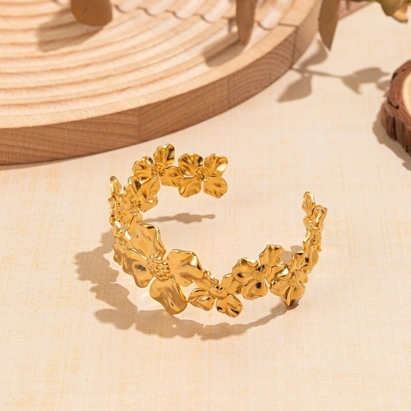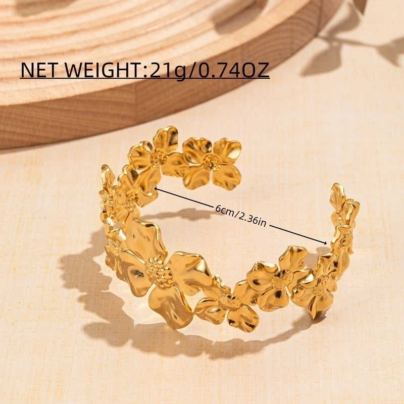 Elegant Retro Flower 201 Stainless Steel Bangle In Bulk