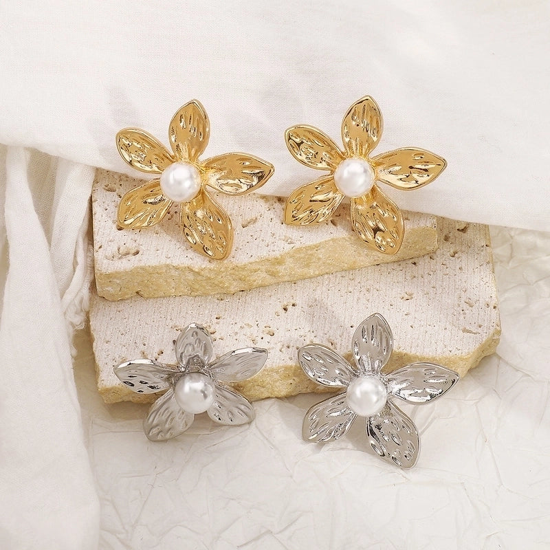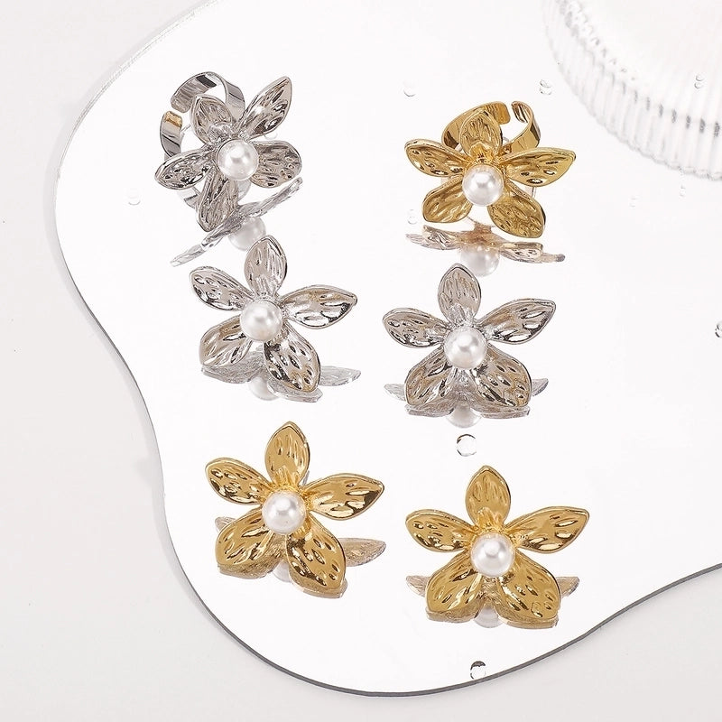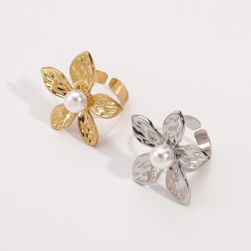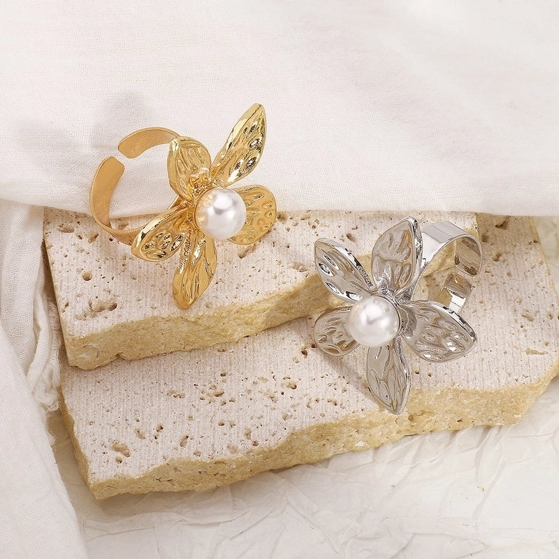 Elegant Retro Pearl Flower Imitation Pearl Alloy Women’s Rings Earrings