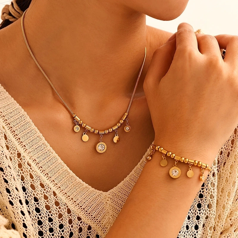 Be the first to review “Elegant Roman Numeral 304 Stainless Steel Zircon 18K Gold Plated Plating Bracelets Necklace” Cancel reply