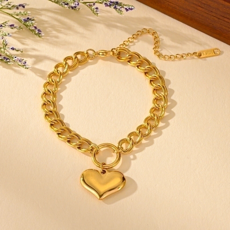 Elegant Romantic Heart Shape Titanium Steel 18K Gold Plated Titanium Steel Bracelets In Bulk