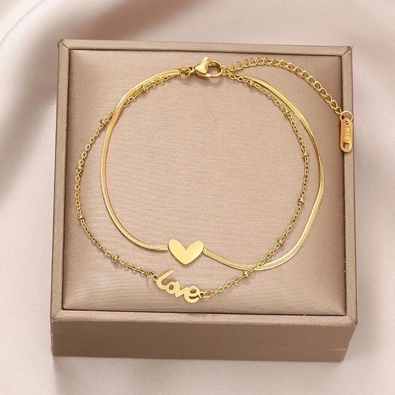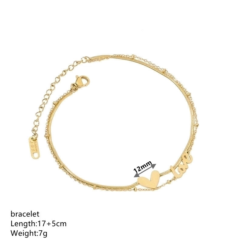 Elegant Romantic Solid Color Love Heart Shape Stainless Steel Titanium Steel 18K Gold Plated Bracelets Anklet Necklace