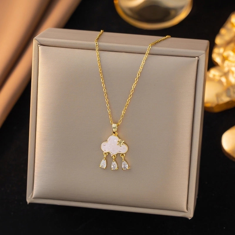 Elegant Sweet Classic Style Clouds 316 Stainless Steel Earrings Necklace Jewelry Set