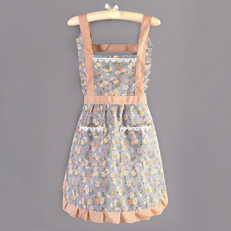 Elegant Sweet Pastoral Ditsy Floral Polyester Apron 1 Piece